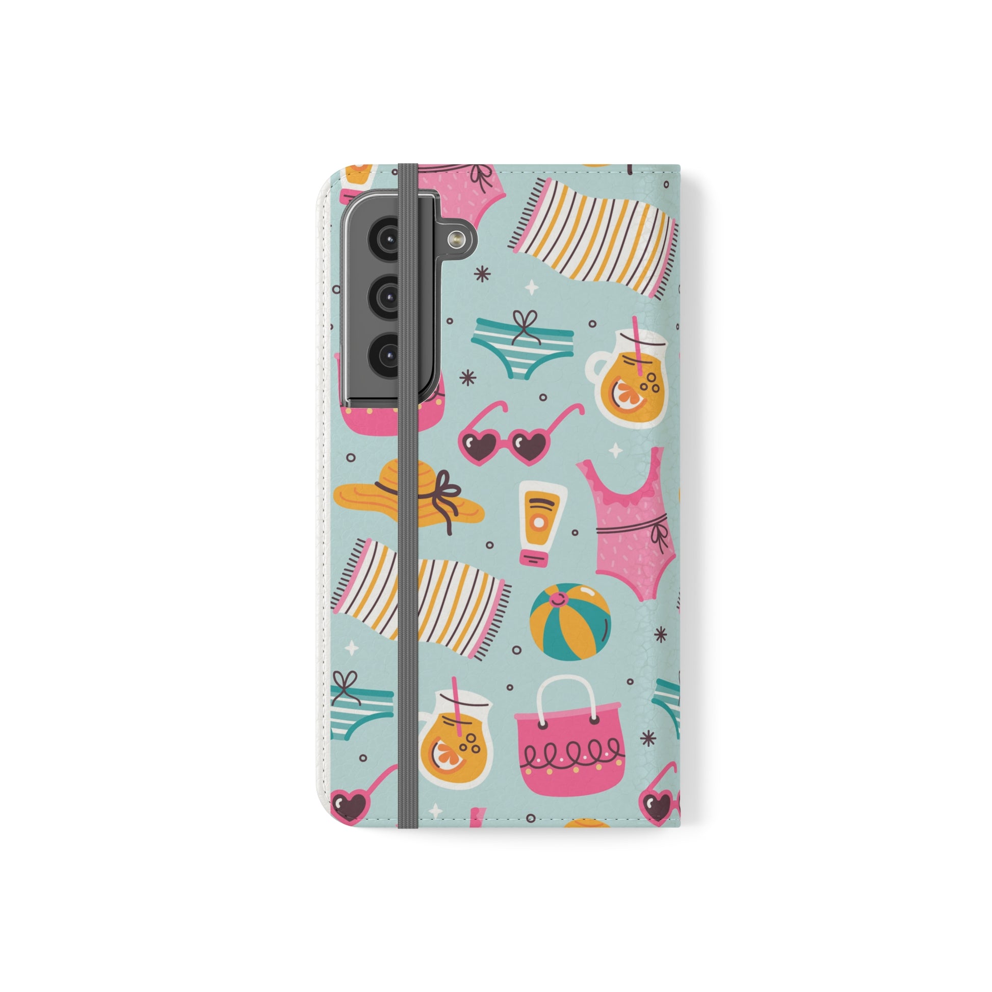 Our flip cases (also known as folio cases) are made from faux leather, that's excellent for printing your original designs in vibrant colors. Each case serves as a protective layer and a phone stand. They feature a flat, elastic fastening to keep them closed and stitched inside pockets to store cards and cash storage easily. The polycarbonate inner shell keeps devices secure during regular wear and tear.